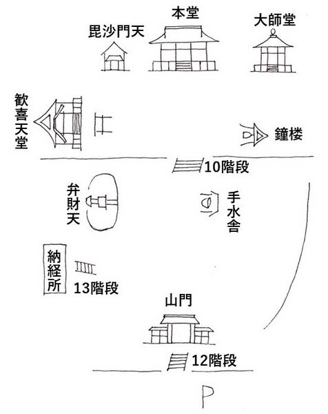 山門の目の前に駐車場があるので、車を降りて階段を上がるとすぐ山門です。