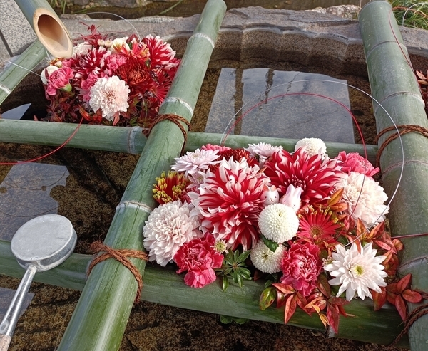 一年を通して、折々に、このような花手水が見られると、心が洗われるような気になります。