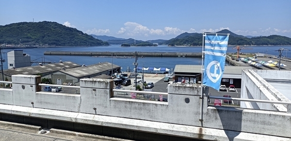 村上海賊ミュージアムの3階の展望デッキからは、能島城が見えます。